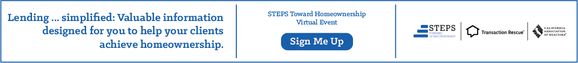 .The CALIFORNIA ASSOCIATION OF REALTORS® STEPS Toward Homeownership addresses housing affordability from the perspective of financial literacy. Did you know over half of all renters in California thought you needed at least 20% down to purchase a home? The reality is there are programs available that enable a purchase with much lower down payments. This program brings relevant information to our members about credit scores, financial planning, leveraging down payment resources and options for low to moderate income earners so that we can educate our buyers. The CALIFORNIA ASSOCIATION OF REALTORS® supports RESPONSIBLE Homeownership.